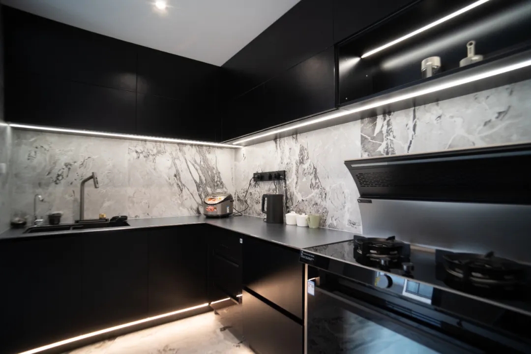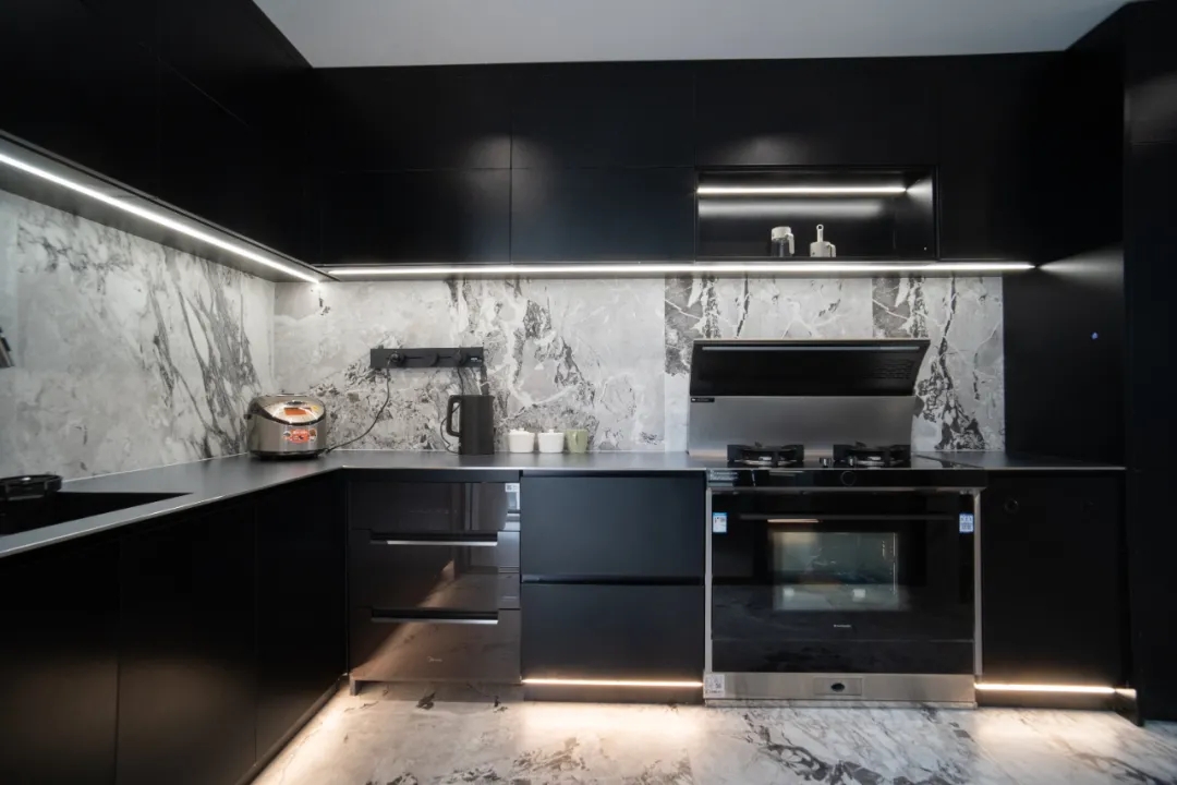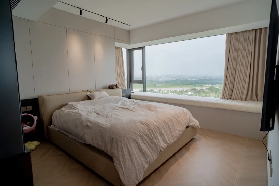 以紫墨起韻,納光影之形,盡素雅純凈。而原木色收納柜則用細節詮釋了現代設計之美,讓情緒在柔美安寧的氛圍中得以舒緩,萬般生活意趣皆藏于此。