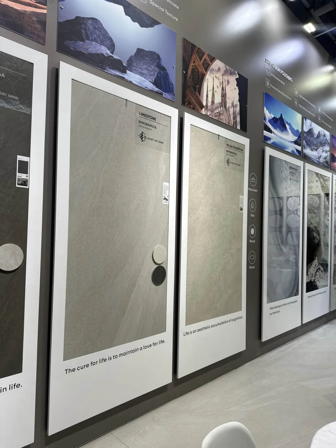 產品設計題材依然以木紋磚、洞石系列、大理石、美學巖板為主流,但更強調產品工藝的表現,花色、規格和質感更加突出,帶來更強的產品表現力,為用戶呈現更高顏值、更高品質、更具個性的美學瓷磚,塑造更高階的空間美學。