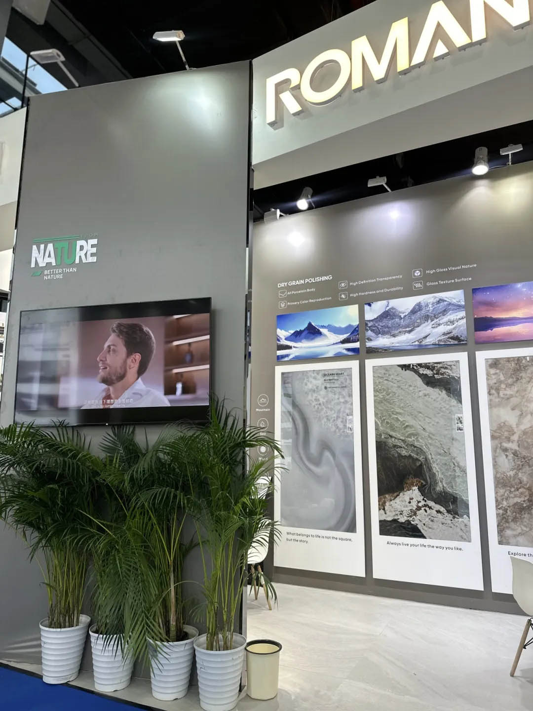 本屆廣交會,羅曼締克攜數碼模具、時間長河、莫奈干粒等新系列產品,以新工藝、新技術、新裝備的開發應用,再次向全世界展現了羅曼締克的產品美學價值和設計創新力。其中時間長河、莫奈干粒、動態數碼、木紋磚等產品憑借c-stone復刻釉、超細干粒拋、數碼模具,高白底坯等全新工藝、頂級性能頻頻出圈,備受海內外客商青睞。