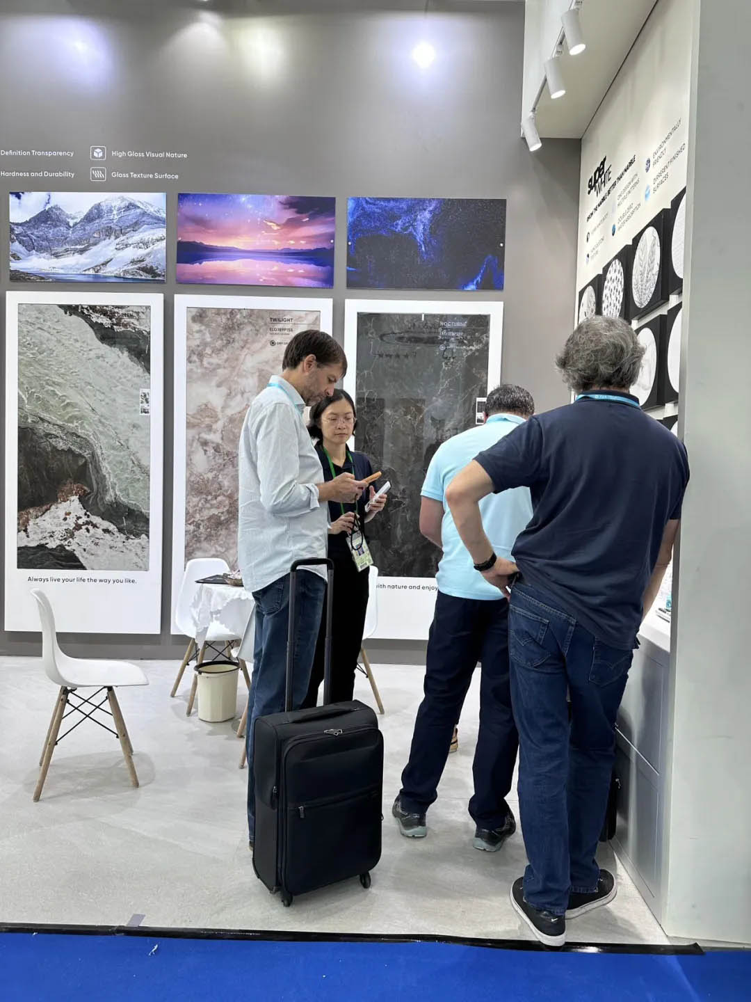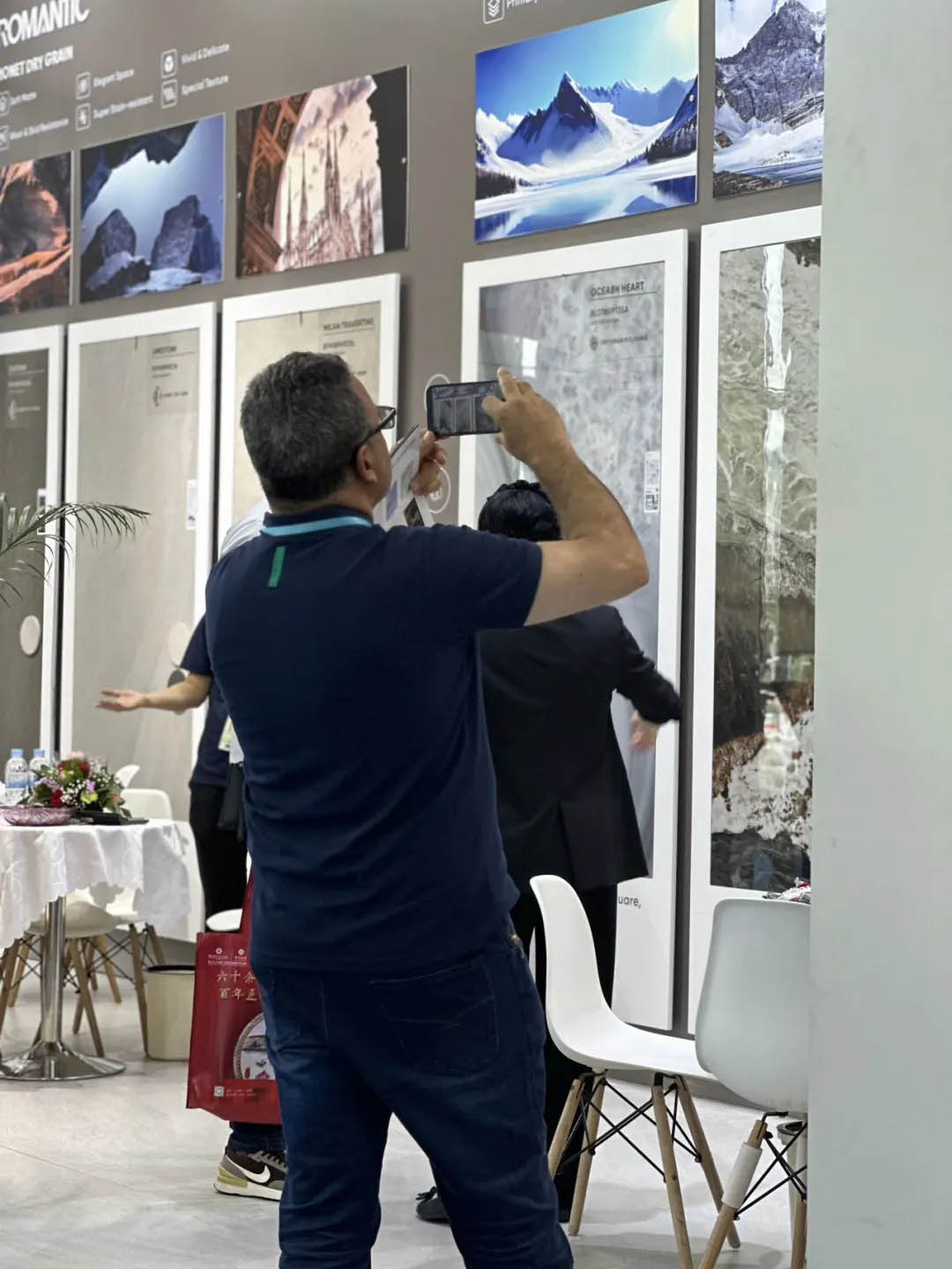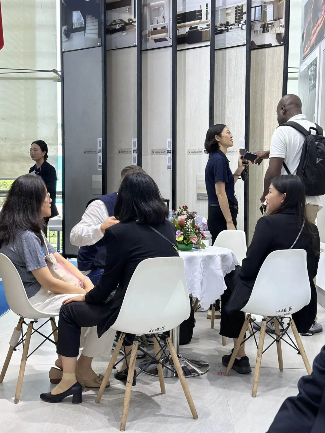 眾多商客通過看、聽、摸等全方位體驗羅曼締克產品的魅力,現場工作人員熱情地向客商們介紹產品情況,并耐心解答觀眾對產品的疑惑,為未來合作奠定良好契機。