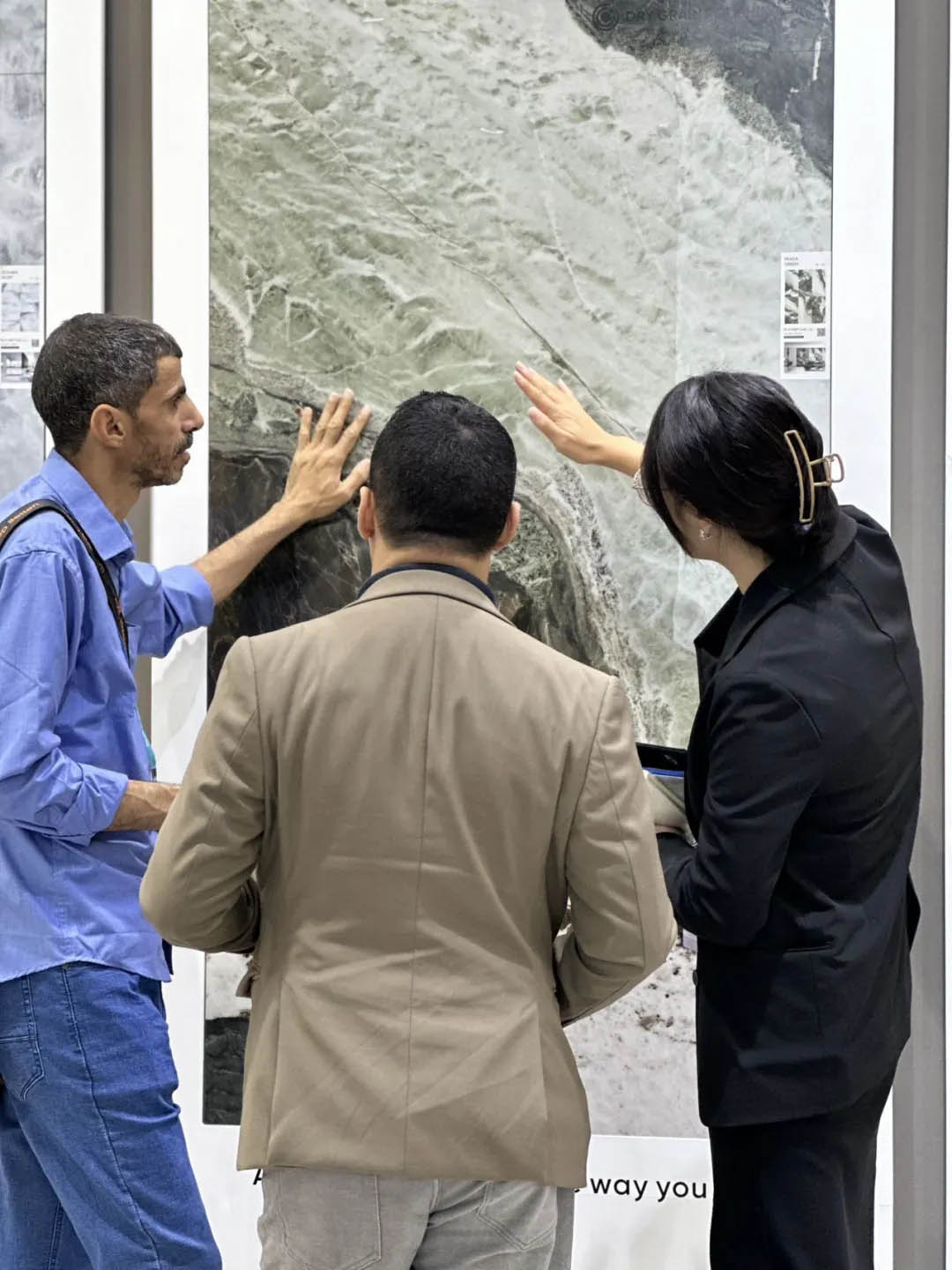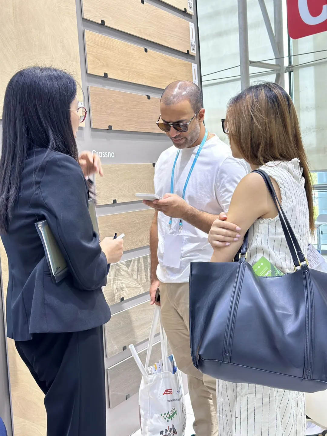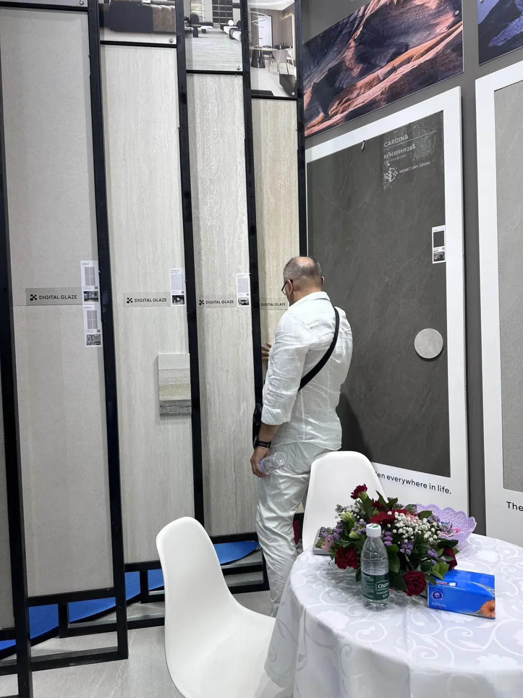 眾多商客通過看、聽、摸等全方位體驗羅曼締克產品的魅力,現場工作人員熱情地向客商們介紹產品情況,并耐心解答觀眾對產品的疑惑,為未來合作奠定良好契機。