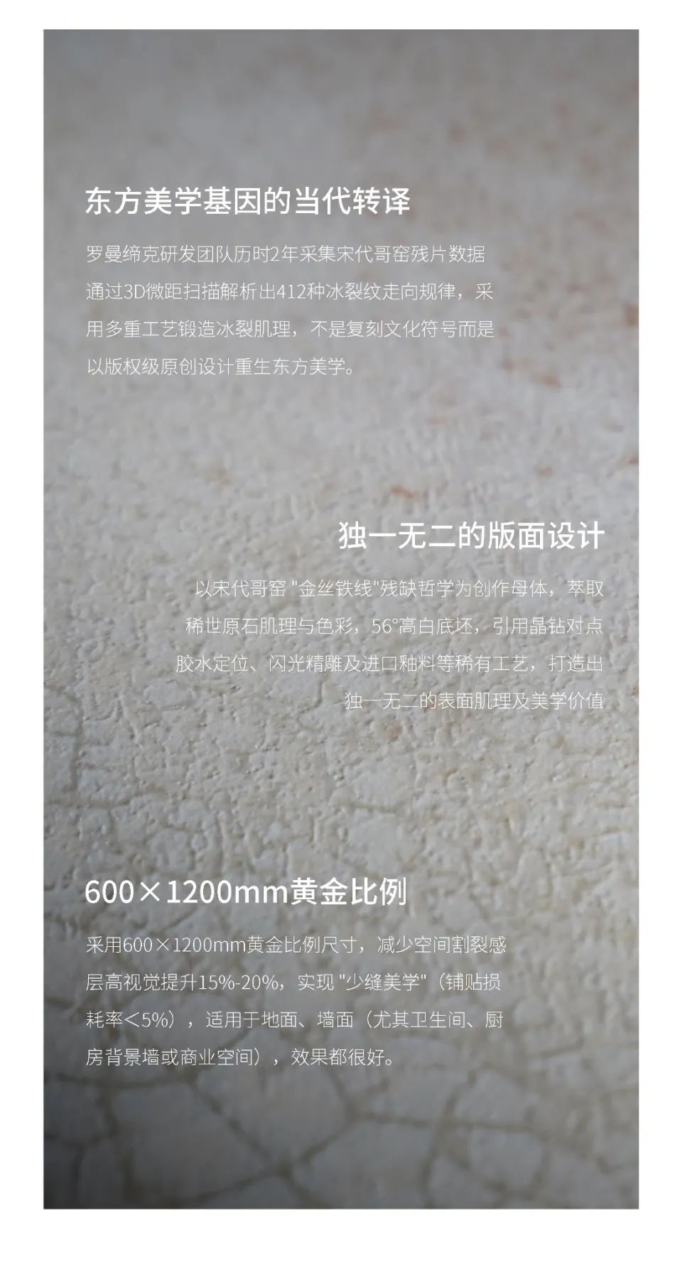 淺霧灰色磚面上,哥窯金絲鐵線紋路如冰河初裂般蔓延。在晨曦時分的微距視角下,正隨步履移動折射出星芒般的細碎光暈,恰好強化了紋路的生長方向,悄然開啟一場跨越千年的美學對話。